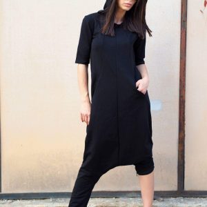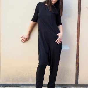 Woman Drop Crotch Jumpsuit/Black Maxi Jumpsuit/Woman Casual Daily