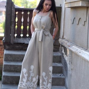 Linen Jumpsuit/ Oversized Summer Romper / Women Clothing/