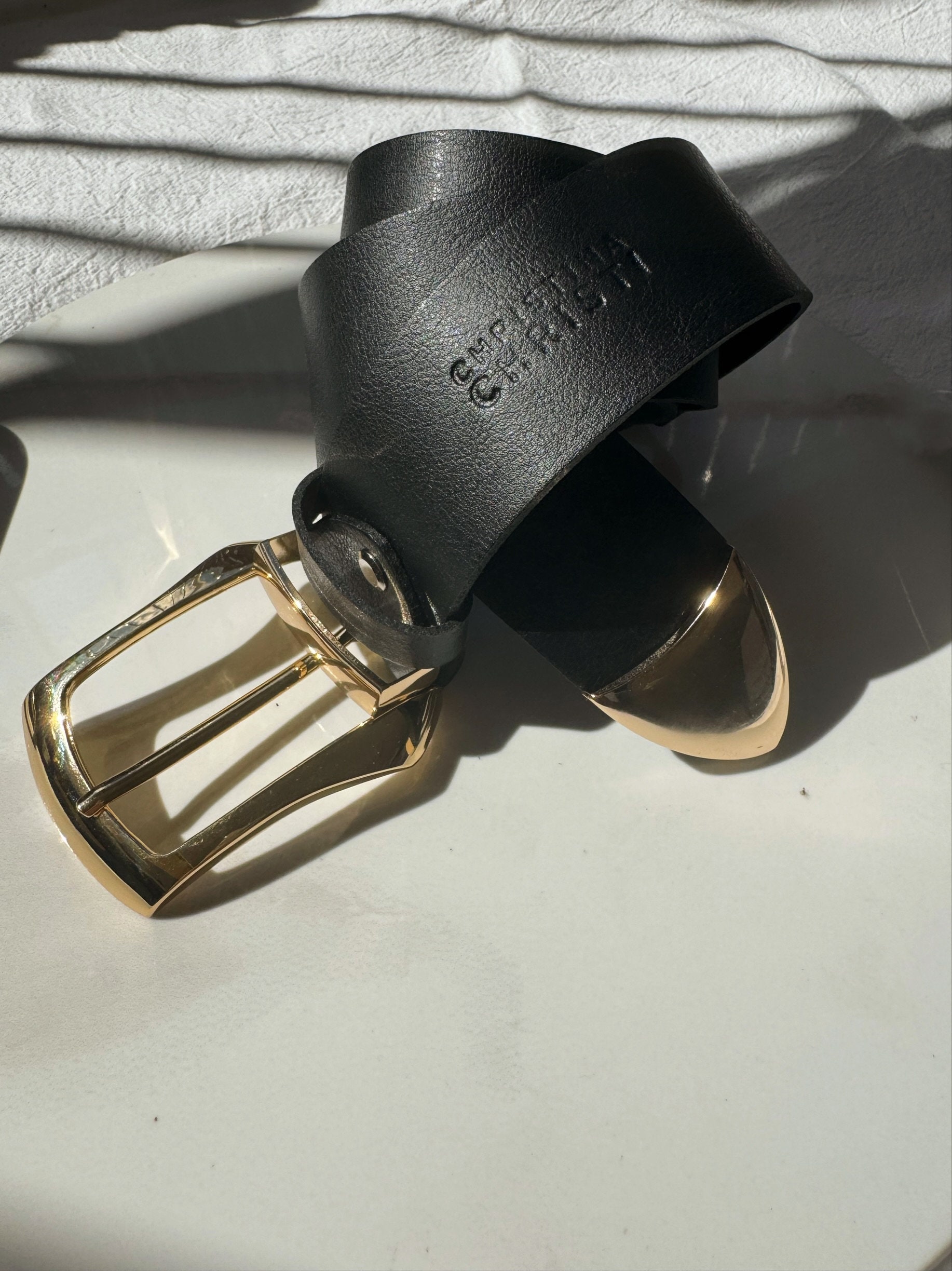 Elevate your style with our exquisite Black Leather Belt, a testament to timeless elegance and versatility. Meticulously handcrafted from genuine leather, this belt features striking black and gold accents. The engraved central buckle, paired with gold buckles on each side and along the edges, adds a touch of sophistication to any outfit. Discover this must-have accessory, exclusively available at us Store, and effortlessly enhance every ensemble with a touch of refined charm.