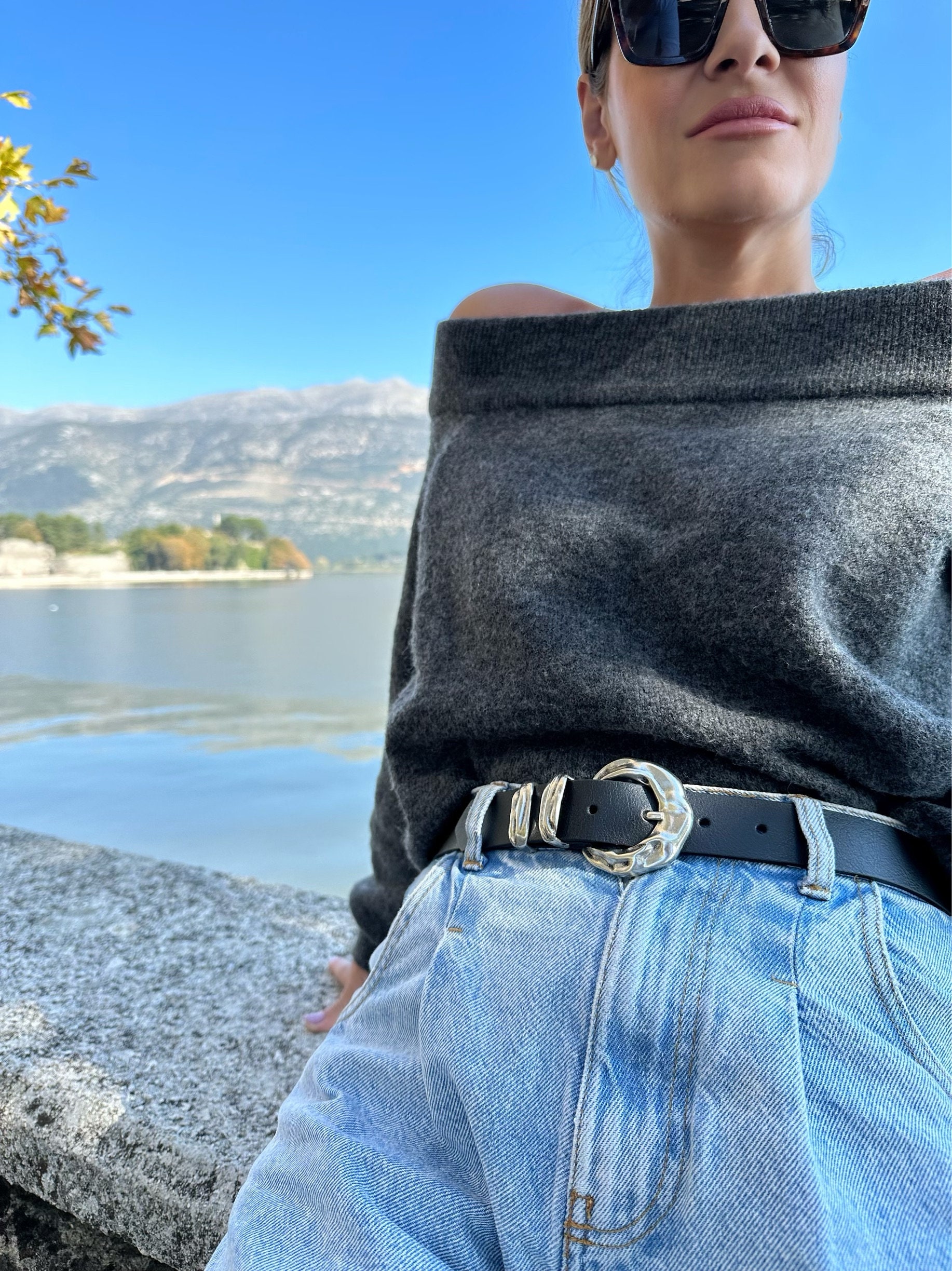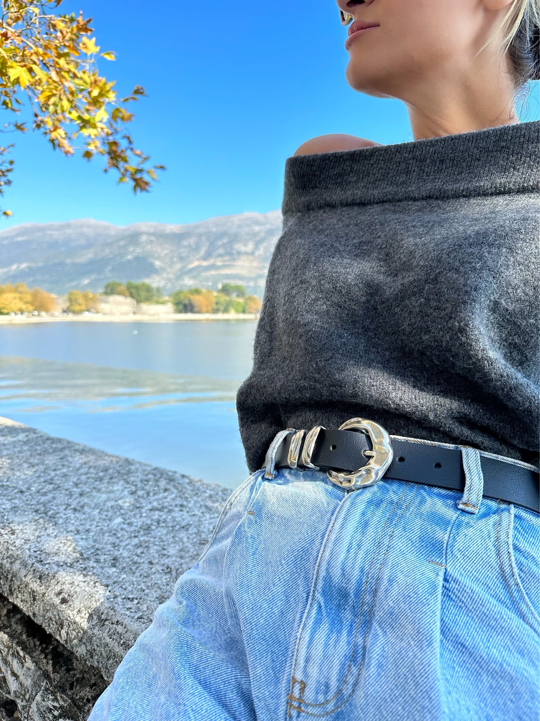 A Handmade Women Belt that is made from Real Genuine Leather in Black Color and I decorate it with a a central buckle two metal loops with waves that give a boho result. The photos of this listing are taken at the famous Greek Lake at Ioannina, so the title ”Rivers Waves” looks Perfect for my creation. Choose the ideal length for you between 8 different dimensions. (THE DIMENSIONS YOU CHOOSE REFERES TO THE LENGTH OF THE BELT NOT YOUR WAIST SIZE – MEASURE THE POINT YOU D LIKE TO WEAR IT AND ADD 15 CM FOR THE SIZE YOU SHOULD SELECT). Find them only at us Store.