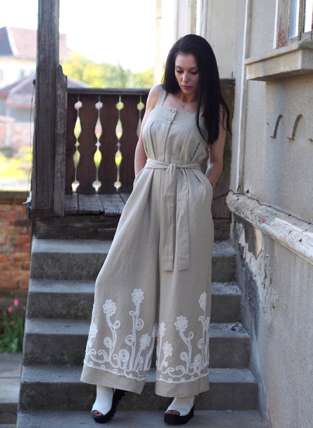 Linen Jumpsuit/ Oversized Summer Romper / Women Clothing/