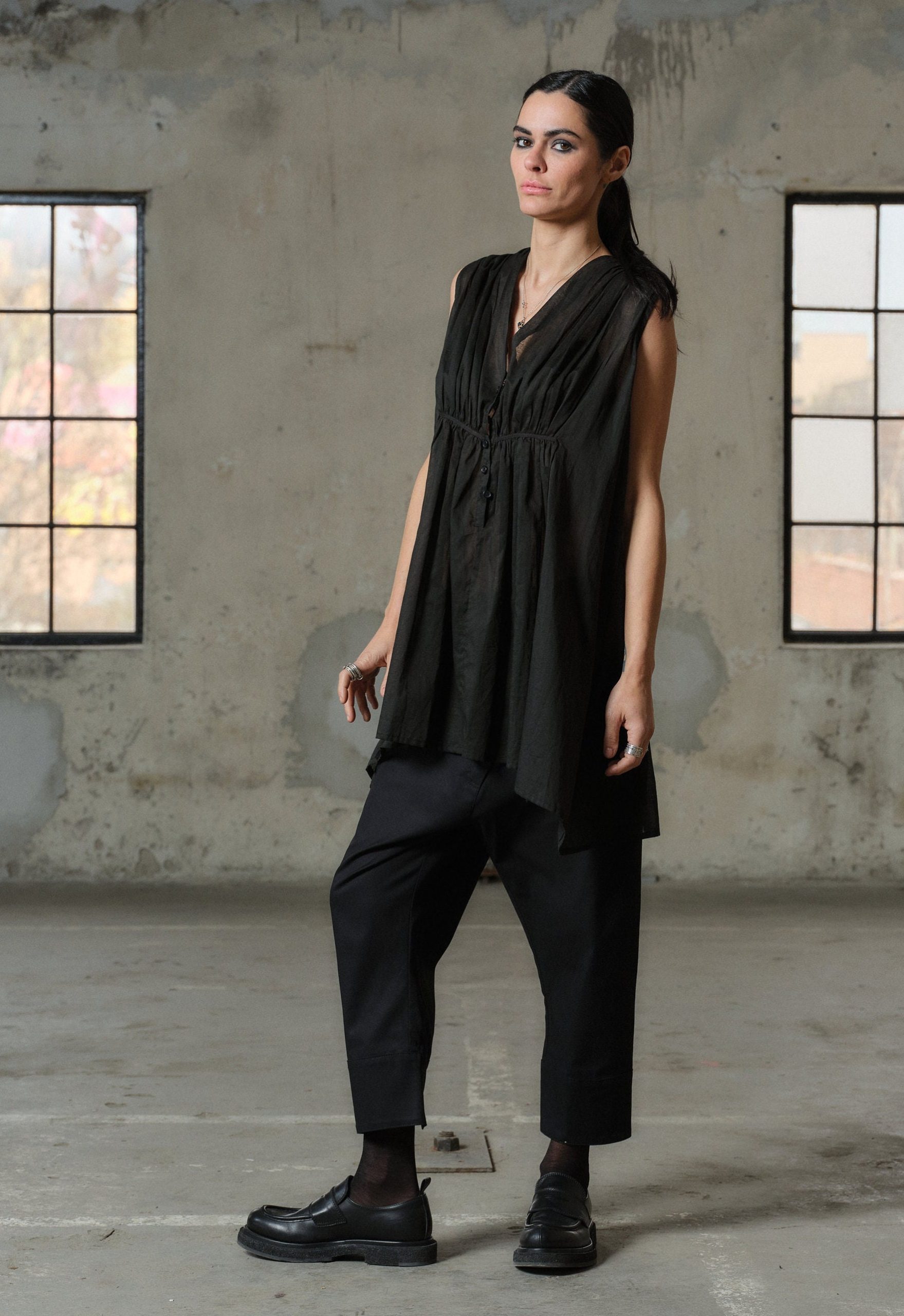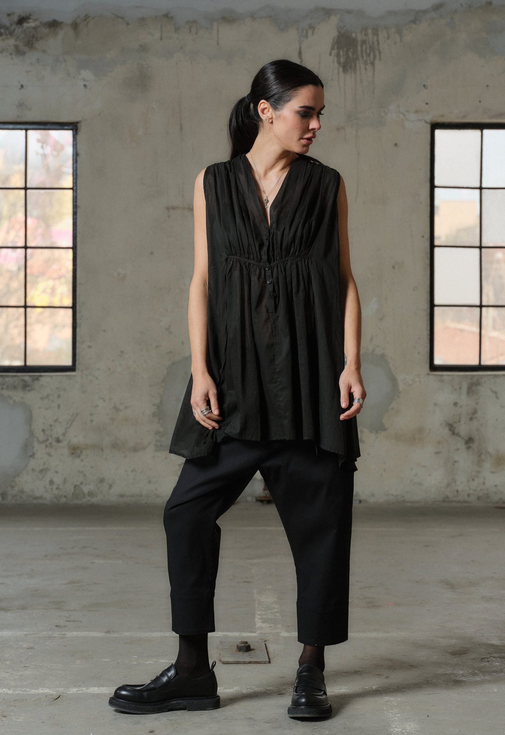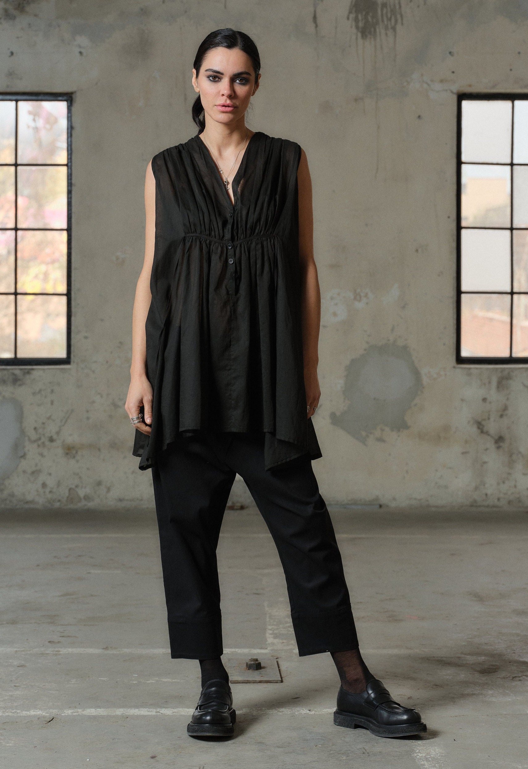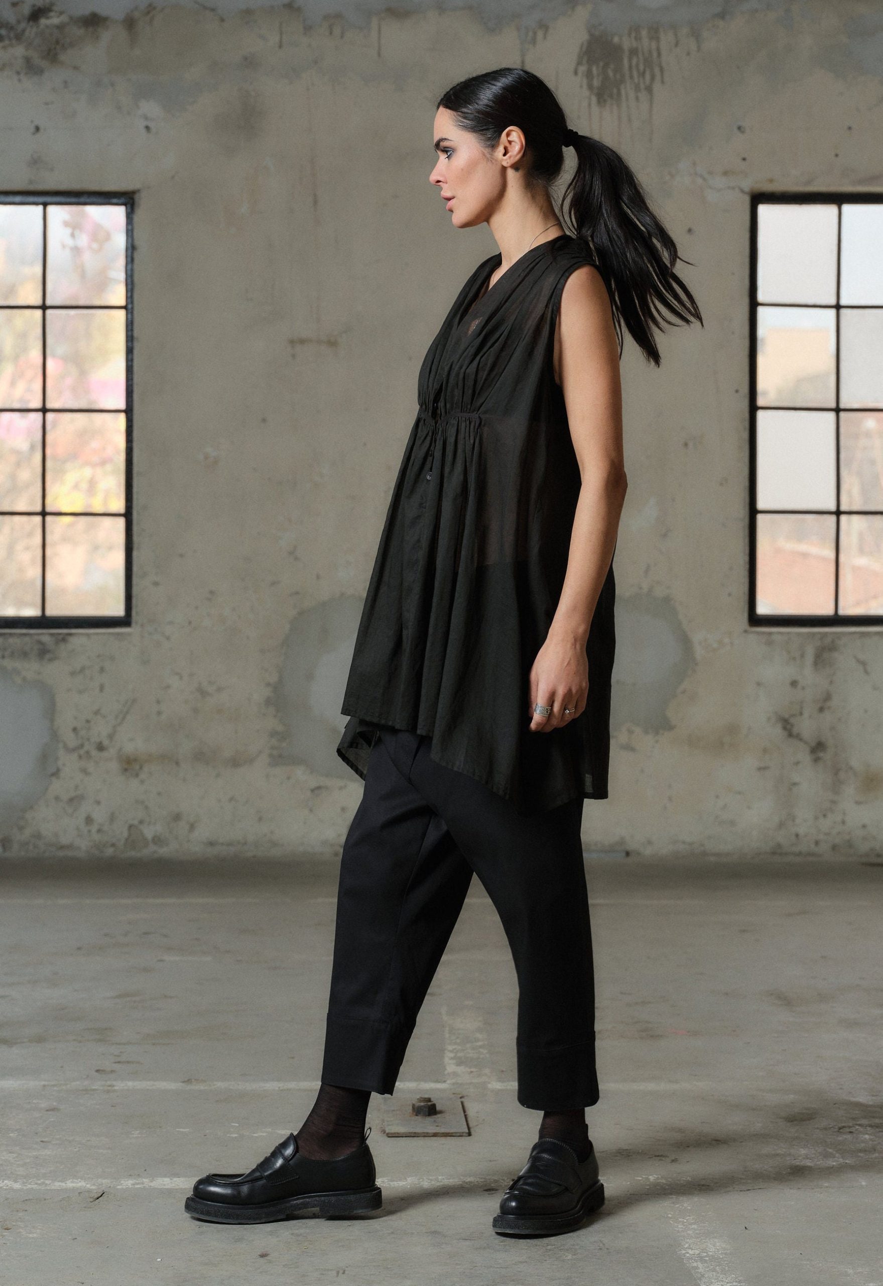 Introducing our Organic Cotton Sleeveless Tunic—a perfect fusion of comfort, style, and avant-garde design for the modern woman. Handmade from high-quality, lightweight organic cotton fabric, this tunic is both eco-friendly and gentle on your skin.