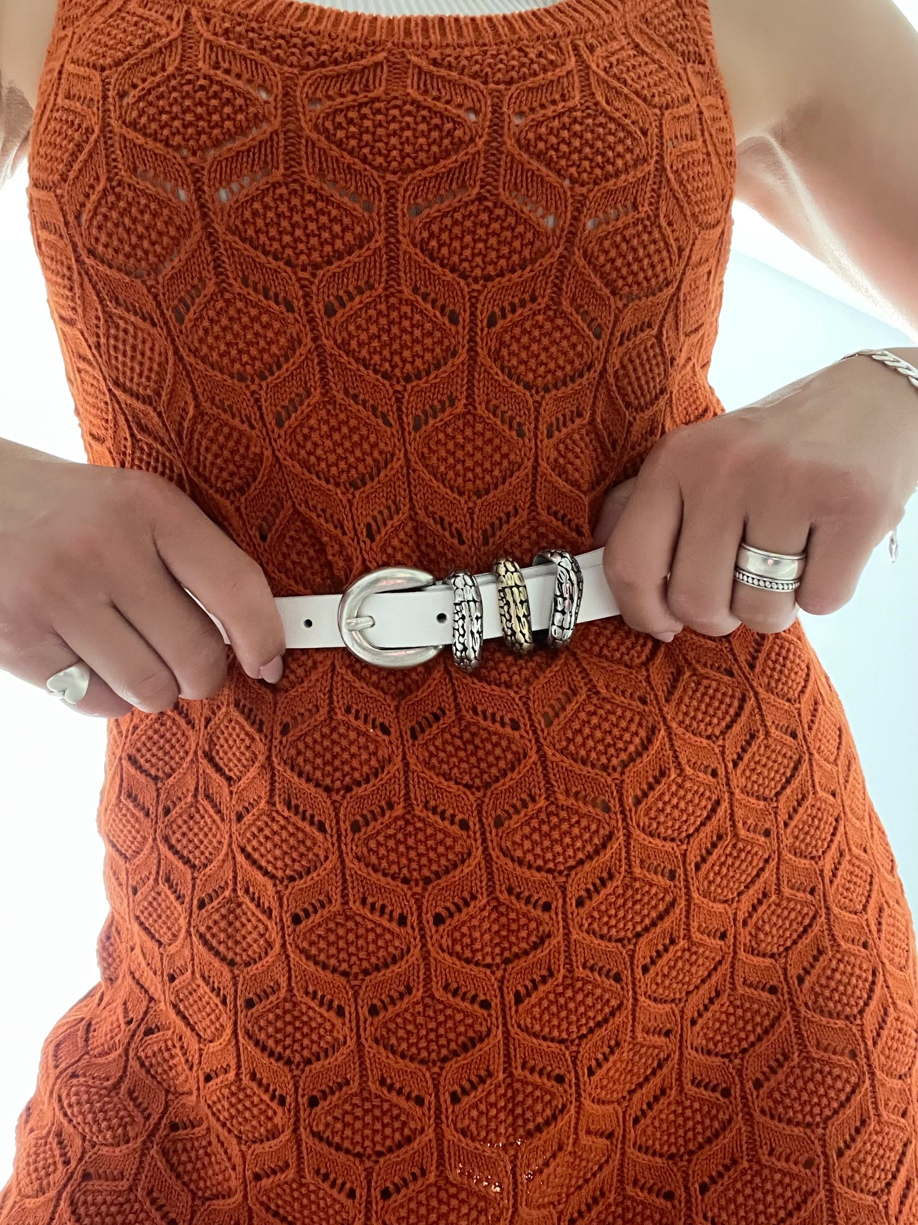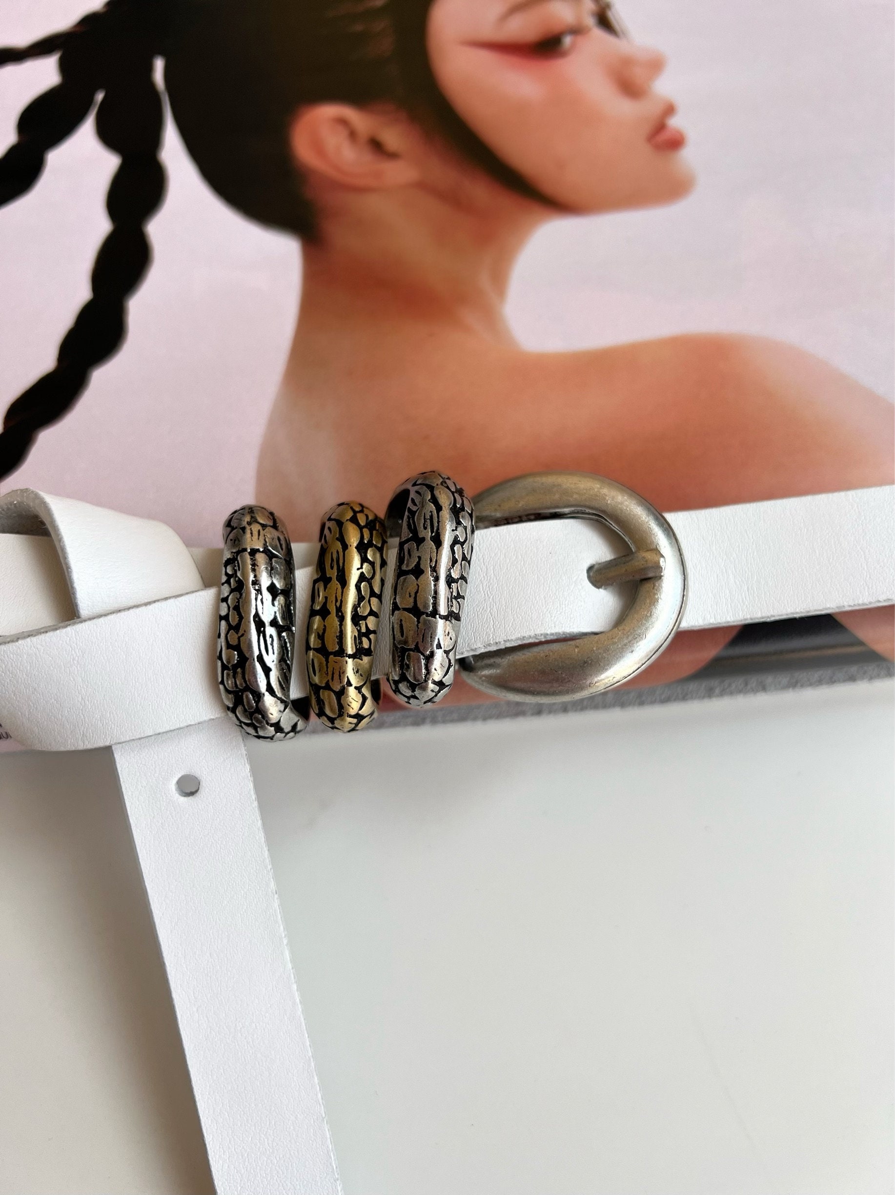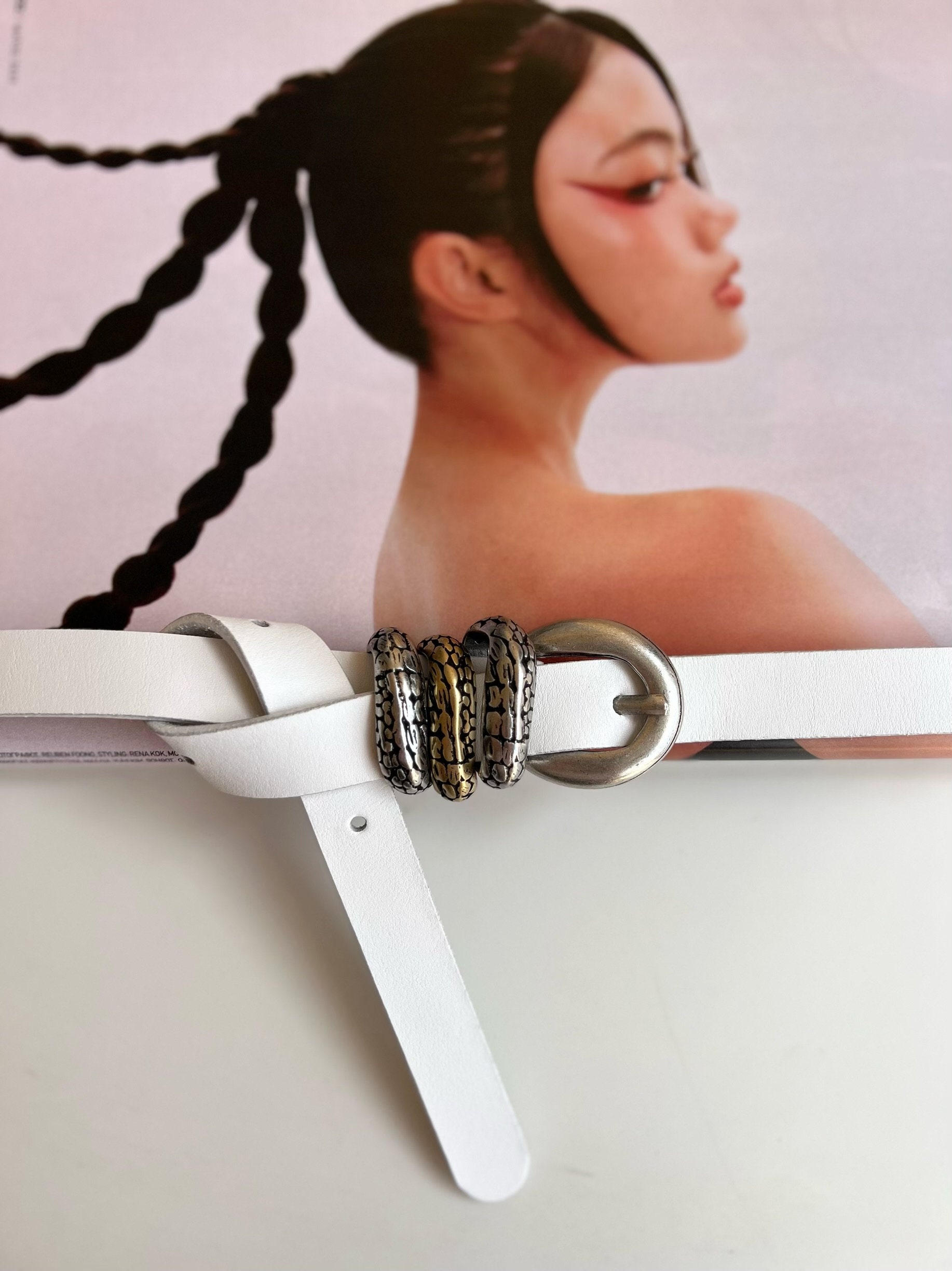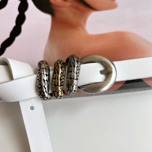 Add a touch of elegance to any outfit with our Thin Leather Belt for women. Handcrafted from real genuine leather in a beautiful white color, this belt is the perfect accessory for any occasion. Its width of 2 cm makes it a great addition to any outfit, while the silver metal buckle at the center and the two metal buckles in silver and bronze colors add a stylish touch. The buckles work like loops and hold the leather part securely. With eight different dimensions available, you can choose the ideal length for you. (THE DIMENSIONS ARE FOR BELT NOT FOR YOUR WAIST). Our Thin Leather Belt is a must-have accessory that is sure to become a staple in your wardrobe. Shop now and discover the perfect belt for you, exclusively at us Store.