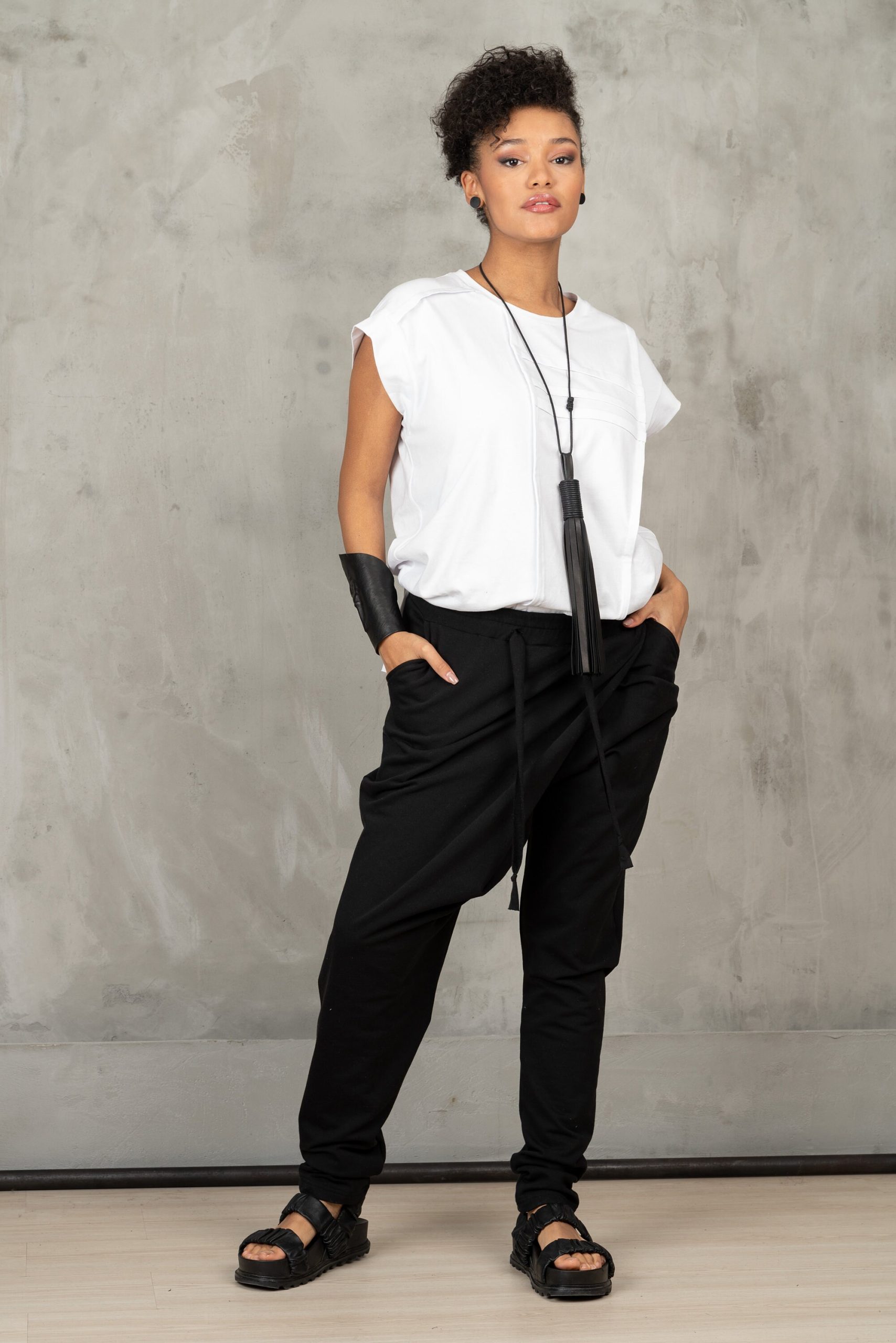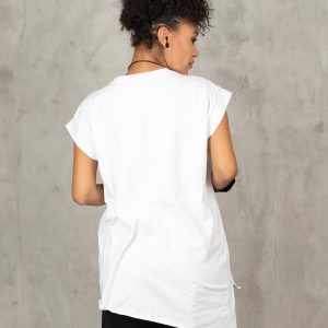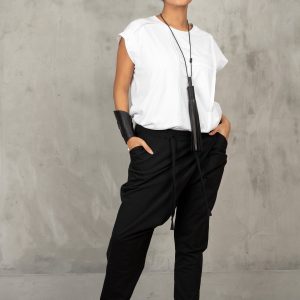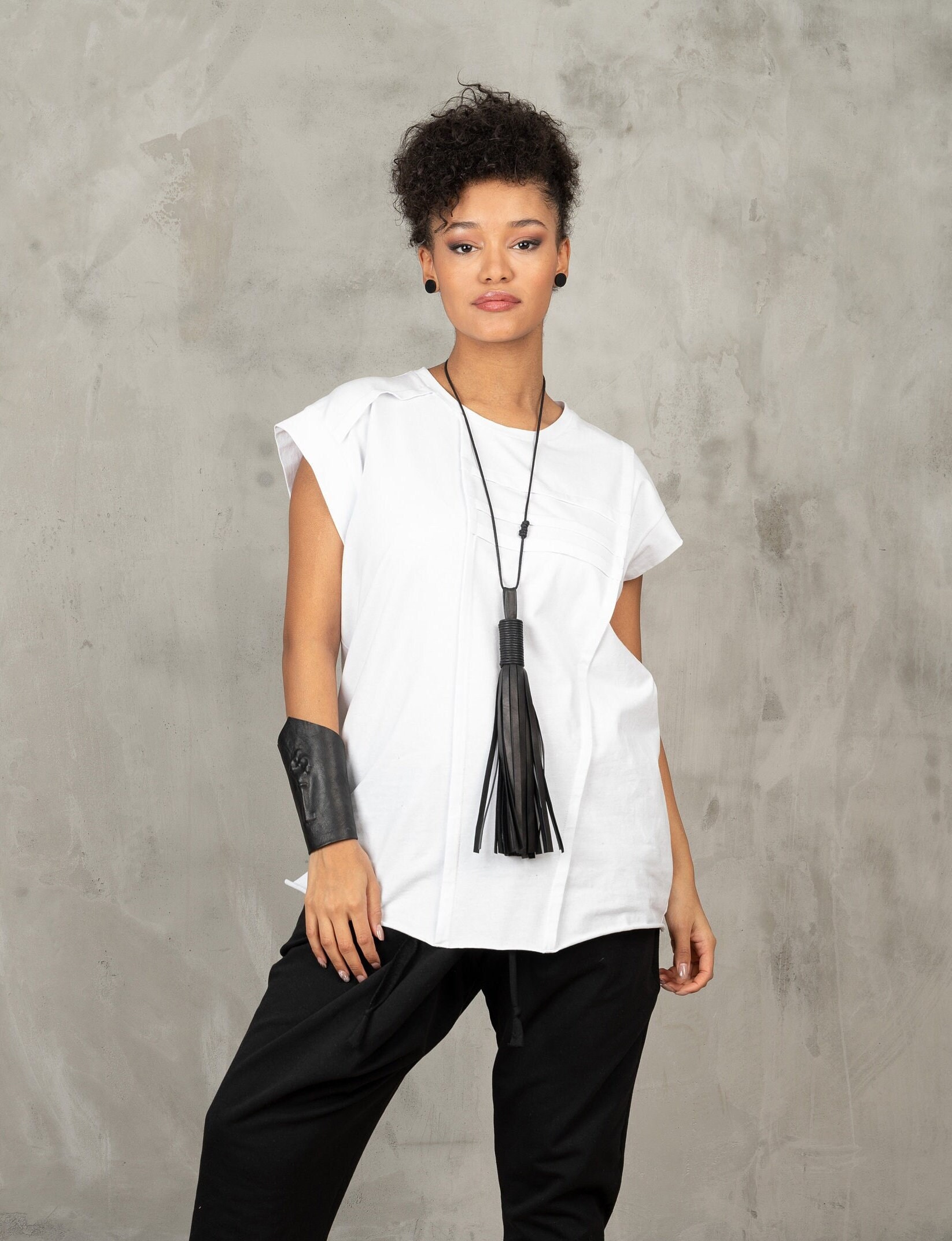 The White top avant garde clothing is our favorite weekender. This minimalist clothing featuring a relaxed fit, а аsymmetric shear.